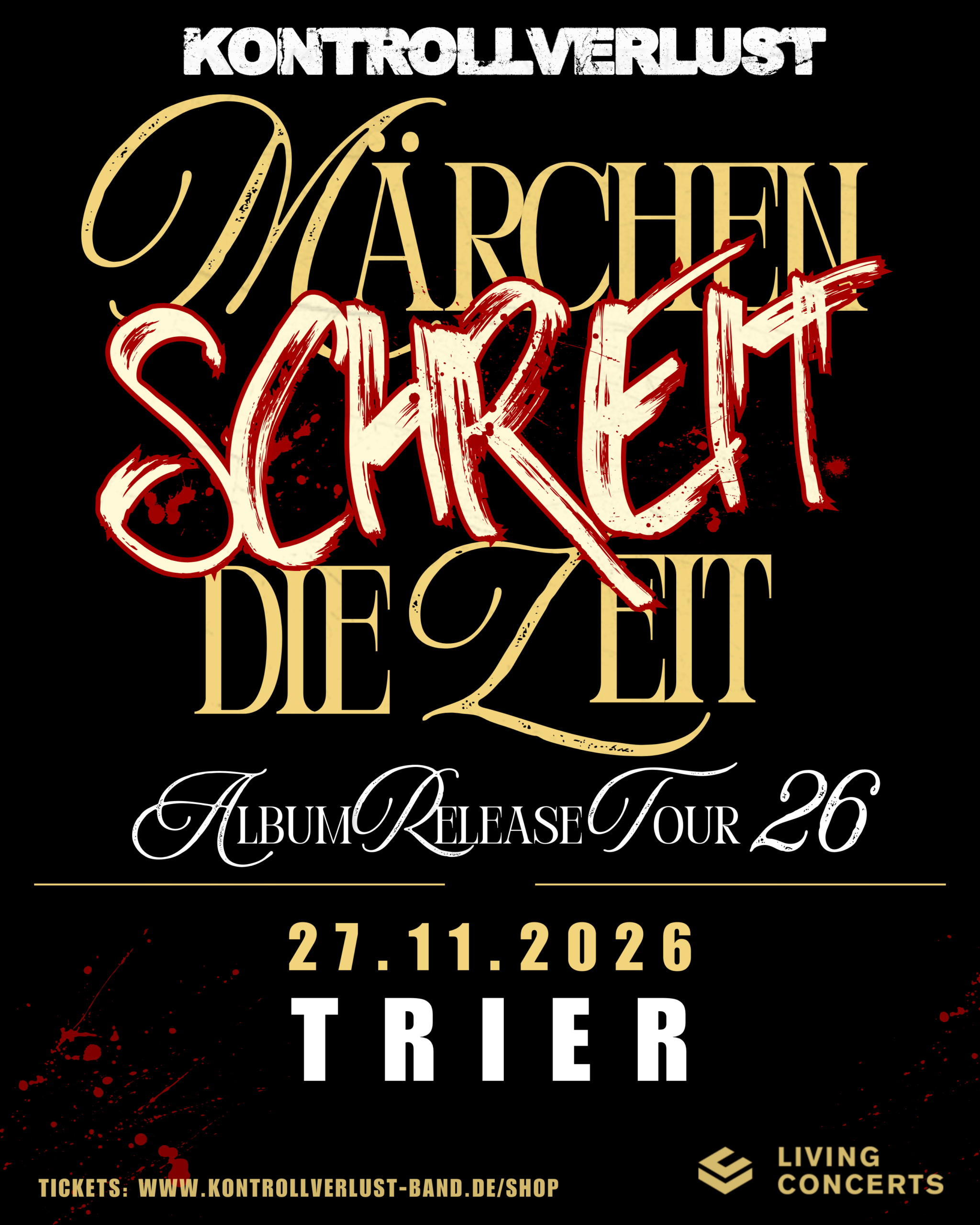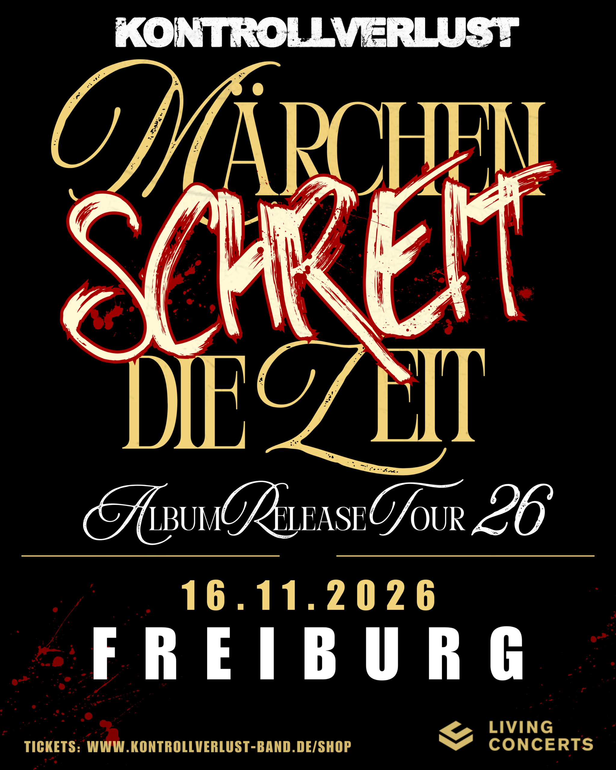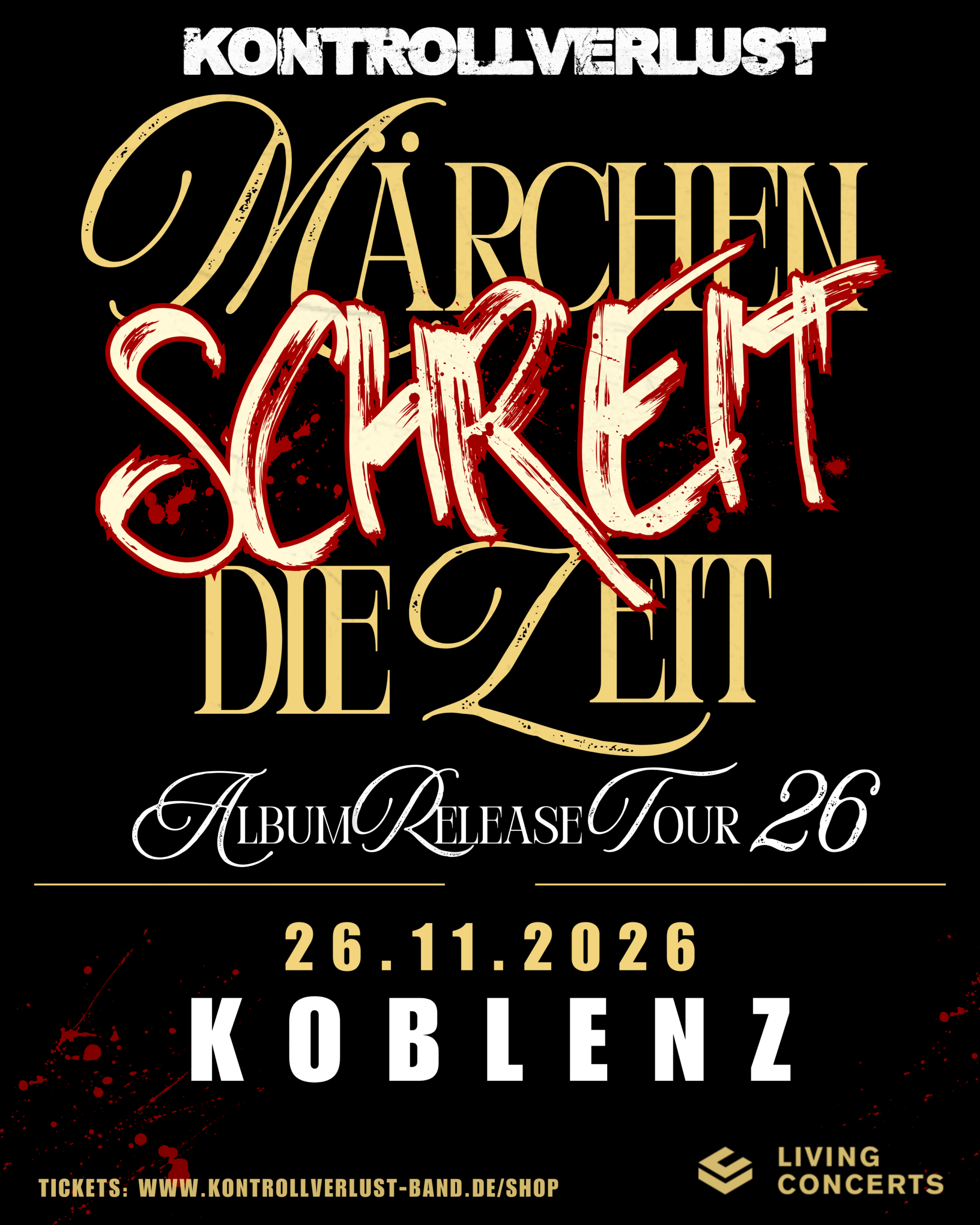 MusikZentrum Hannover Emil-Meyer-Straße 26, Hannover, GermanyDie „MÄRCHEN SCHREIT DIE ZEIT TOUR“ macht Halt im MusikZentrum Hannover.📅 Donnerstag, 05. November 2026 📍 Adresse: Emil-Meyer-Straße 26, 30165 Hannover, Deutschland 🕖 Geplanter Einlass: 19:00 Uhr🎸 Beginn: ca. 20:00 Uhr TICKETS gibt es hier: https://www.eventim.de/event/kontrollverlust-maerchen-schreit-die-zeit-tour-2026-musikzentrum-hannover-21285618/ Freu dich auf unseren Tourstart in Hannover!!!Alle Zeiten sind vorläufig – wenn sich etwas ändert, informieren wir hier auf der […]